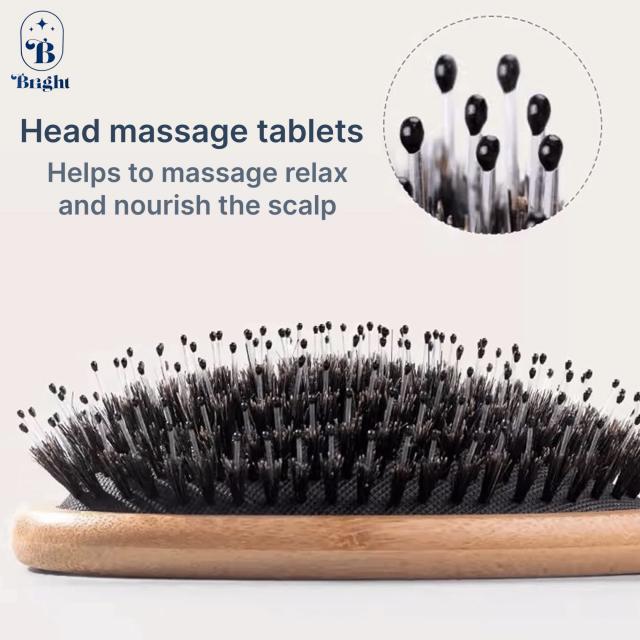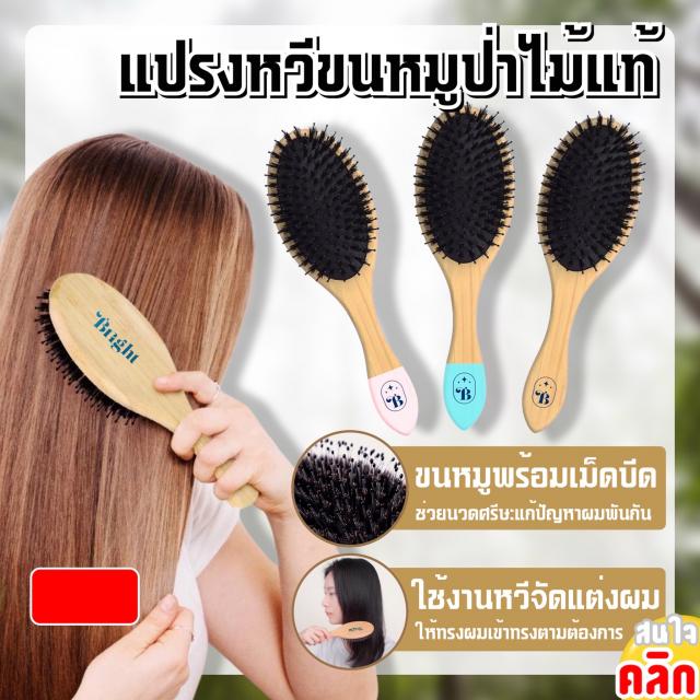 • Bright wooden comb brush แปรงหวีขนหมูป่าไม้แท้ ราคาส่ง 35 บาท