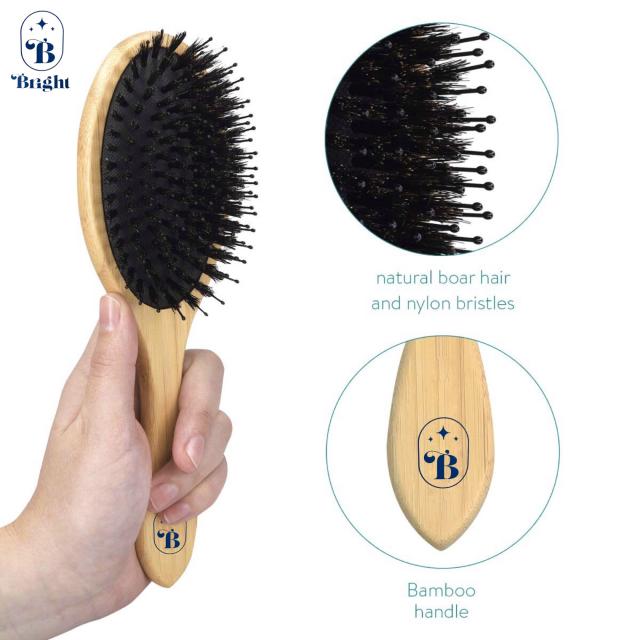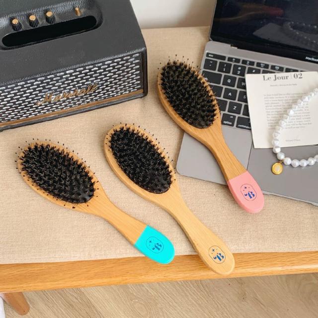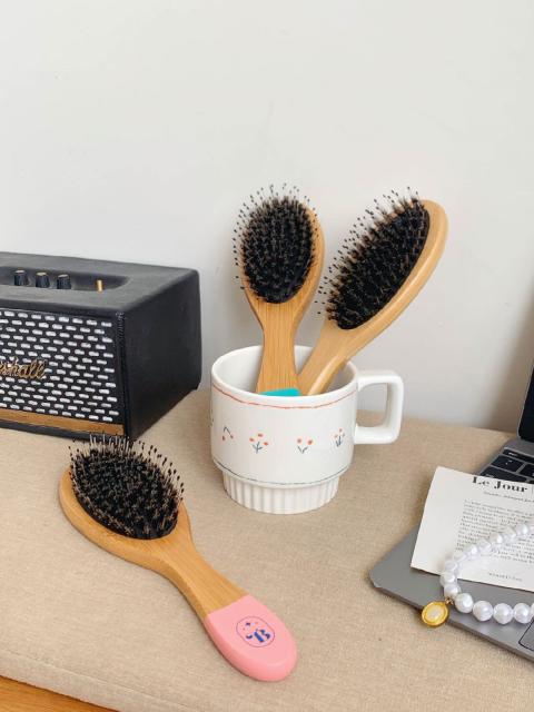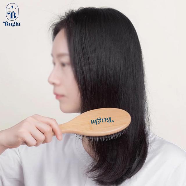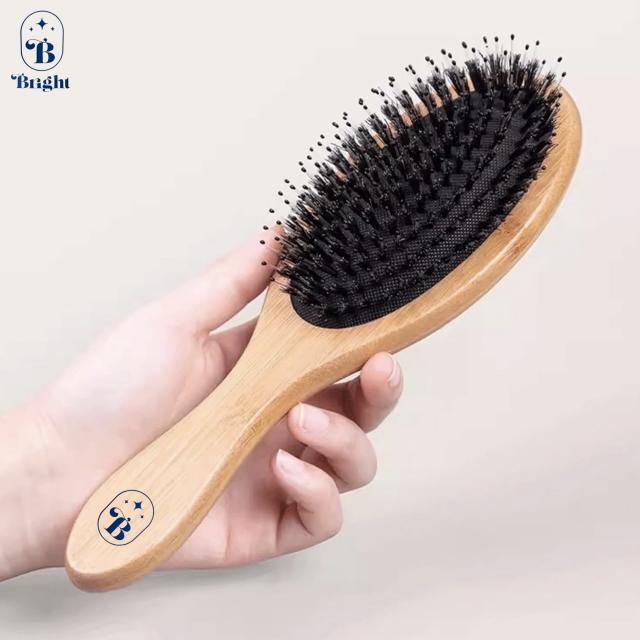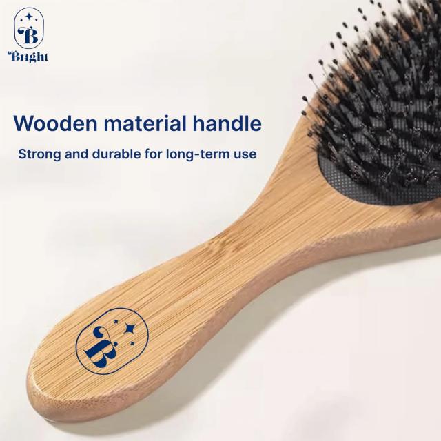 Bright wooden comb brush แปรงหวีขนหมูป่าไม้แท้ ราคาส่ง 35 บาท