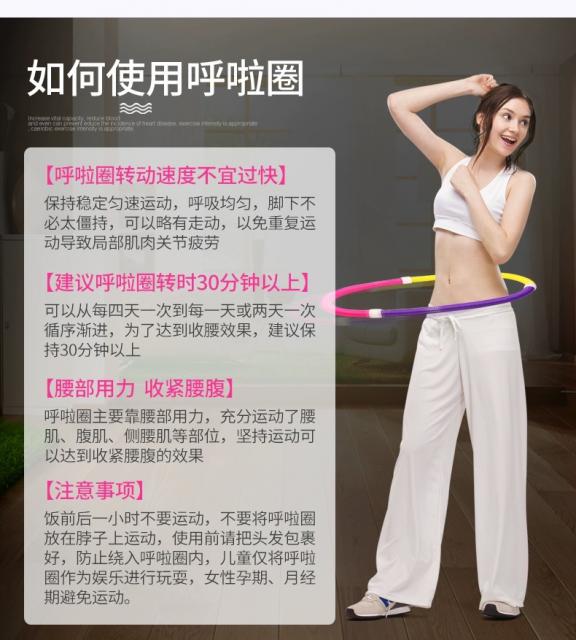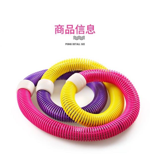 Hula hoop sipong rolling ฮูล่าฮูปสปริงยืดหด 360 องศาออกแบบพิเศษ ทำให้ไม่ทำให้ฟกช้ำตามเอว ช่วยกระชับความแข็งแรงของกล้ามเนื้อบริเวณหน้าท้อง และหลังส่วนล่างด้วย ช่วยกระชับและลดสะโพก เอว และก้น อีกทั้งยังทำให้การไหลเวียนโลหิตเพิ่มมากขึ้น อัตราการเต้นของหัวใจเพิ่มสูงขึ้น สามารถพกพาไปออกกำลังกายได้ง่ายเพียงแค่พับเก็บเป็นม้วนเก็บง่าย ประหยัดพื้นที่ ใส่กระเป๋าได้ ไม่เกะกะ ช่วยให้เผาผลาญไขมันไปเป็นพลังงาน จึงช่วยให้ร่างกายมีน้ำหนักลดลง ทำให้หุ่นดูดี และร่างกายแข็งแรงยิ่งขึ้น เล่นได้หลากหลายท่า กระชับได้ทั้ง แขน ขา หลัง ไหล่ ตัววัศดุสปริงเป็นทนทานต่อการใช้งานที่ยาวนาน ไม่เหมือนฮูล่าฮูปแบบพลาสติกตัวเก่าซึ่งเปราะแตกหักง่าย เพียงแค่เล่นฮูล่าฮูป 20 นาที ก็สามารถเผาผลาญพลังงานได้มากถึง 200-300 แคลอรี่