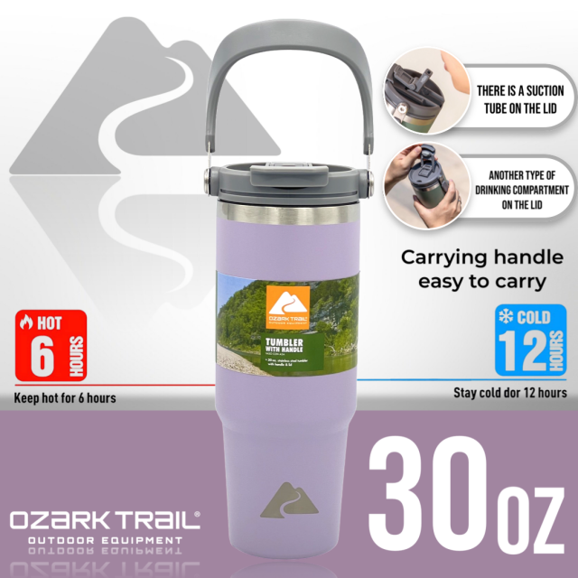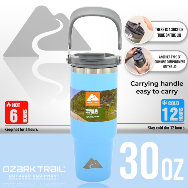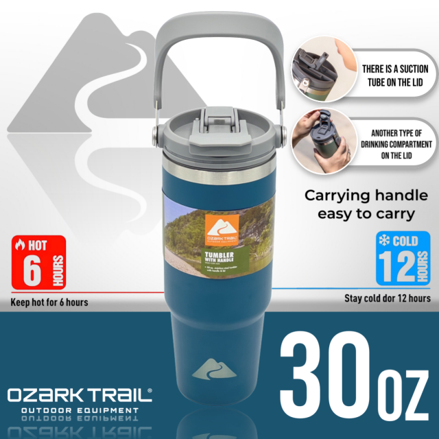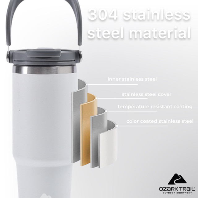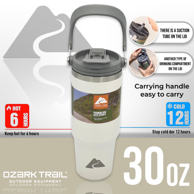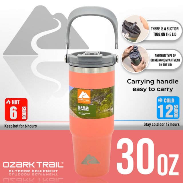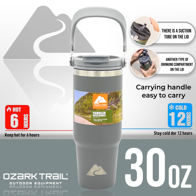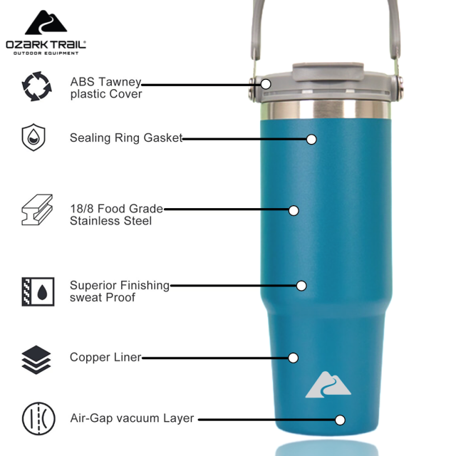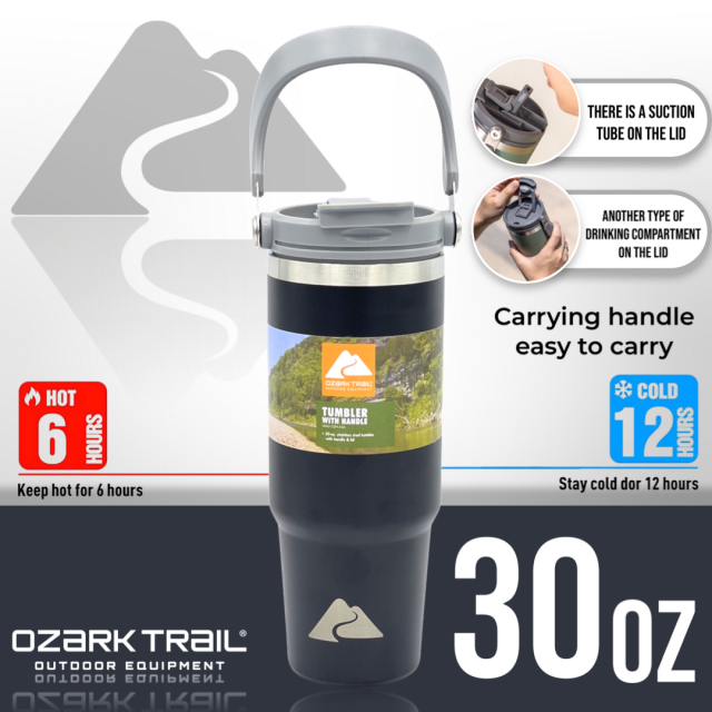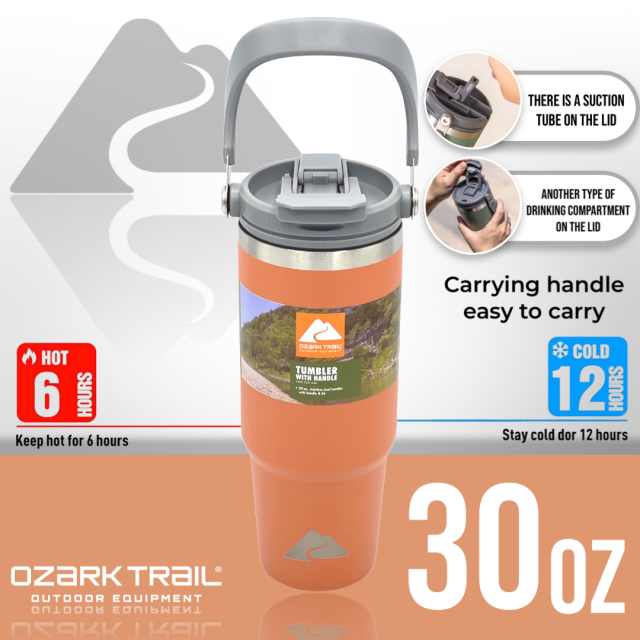 Ozark trail 30oz tumbler handle แก้วน้ำเก็บเย็นยาวนาน สำหรับใครที่กำลังหาแก้วน้ำดีไซด์ทรงใหม่และสามารถเก็บความเย็นได้ยาวนาน ด้วยตัวด้านในเป็น Stainless steel 304 ช่วยในการเก็บความเย็นได้ดียิ่งขึ้น ขนาด 30oz กำลังพอดีในการเก็บปริมาณของน้ำ พกพาได้ทุกสถานที่พร้อมหูหิ้วที่ตัวฝาพกพาสะดวก สามารถวางในคอนโซลรถได้ เรียกว่าครบคันใน 1 เดียว ฝาแก้วพร้อมหูหิ้วหลอดดื่มที่ฝาง่ายสะดวกต่อการใช้งาน สามารถถอดแยกชิ้นทำความสะอาดได้ง่ายหลังการใช้งาน
