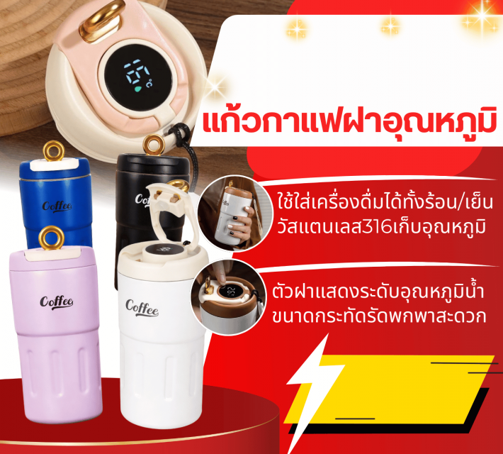 Temperature controlled coffee mug แก้วกาแฟฝาอุณหภูมิ ซื้อ 1 แถม 1 Gifzysampeng