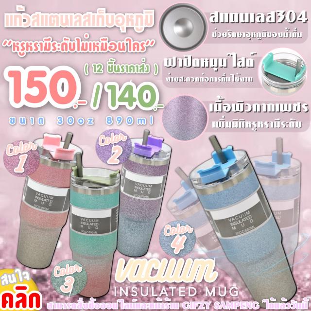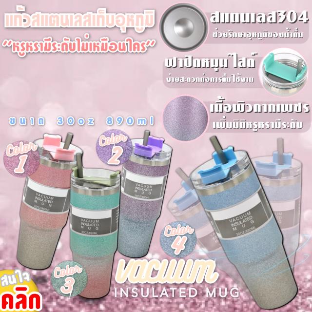 แก้วน้ำสแตนเลสเก็บอุหภูมิฝาหมุนสไลด์ แก้วน้ำดีไซด์ทรงใหม่ทันสมัยไม่เหมือนใคร และสามารถเก็บความเย็นควาาร้อน ด้วยตัวด้านในเป็น Stainless steel ช่วยในการเก็บความเย็นได้ดียิ่งขึ้น ขนาด 890ml รูปทรงแก้วแบบใหม่จับถนัดมือ พกพาได้ทุกสถานที่สามารถวางในคอนโซลรถได้ เรียกว่าครบคันใน 1 เดียว ฝาแก้วปิดหมุนสไลด์ พร้อมช่องเสียบหลอดสะดวกต่อการดื่ม ง่ายต่อการทำความสะอาด ตัวลายกากเพชรสวยหรู สำหรับใครกำลังมองหาแก้วน้ำเป็นของฝากของแจกพรี่เมี่ยม หรือนำไปใช้งาน แบรนดังยอดฮิตของยุโรป